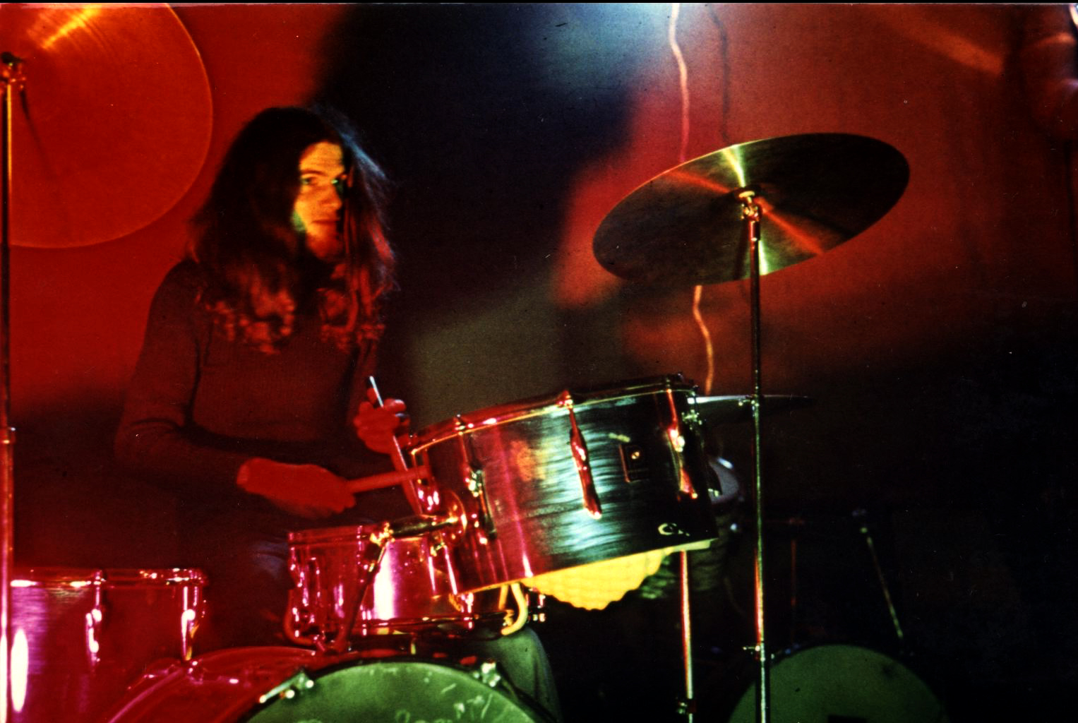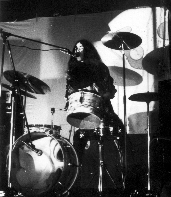 Il a débuté sa carrière de percussionniste en tapant sur des barils de lessives géants avec des banderilles (souvenir d'Espagne), puis sur un tambourin qui en avait vu d'autres ...(voir photo (très chaude) du tambourin qui en avait vu de belles). Le voici sur cette photo, en pleine déclamation des poèmes du groupe au concert de Pen Ar Créach 1974